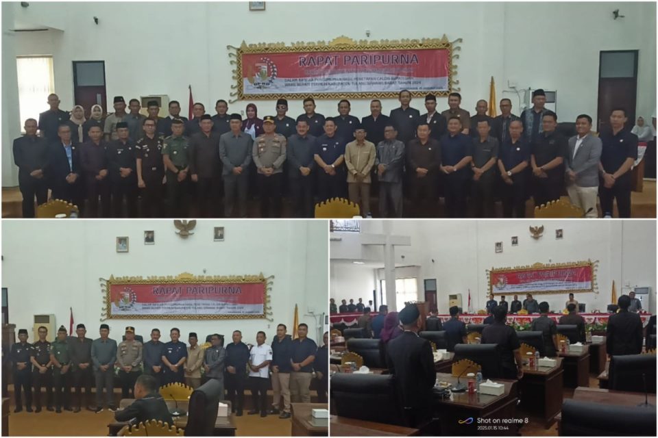 Dewan Perwakilan Rakyat Daerah (DPRD) Kabupaten Tulangbawang Barat (Tubaba) menggelar Rapat Paripurna Tahun 2025 untuk mengumumkan penetapan pasangan calon Bupati dan Wakil Bupati terpilih, Senin (15/1/2025). Acara berlangsung di ruang Sidang Paripurna DPRD Tubaba dan dihadiri oleh berbagai pihak terkait.